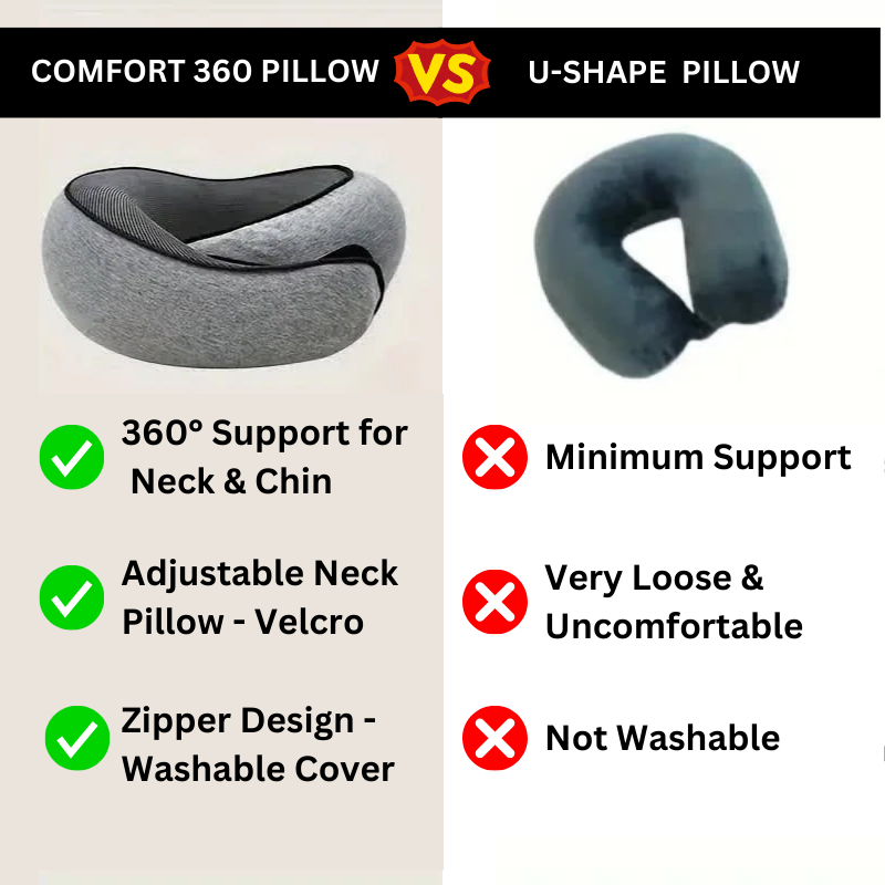 Introducing the Comfort 360 Neck Pillow! This innovative pillow ensures you travel in pure comfort, supporting your neck and head with memory foam that adapts perfectly to your shape. Its lightweight, breathable fabric keeps you cool and comfortable, making it ideal for long flights, road trips, or daily commutes. Experience restful sleep on the go with full support that eliminates neck pain and stiffness—your perfect travel companion for every journey!